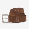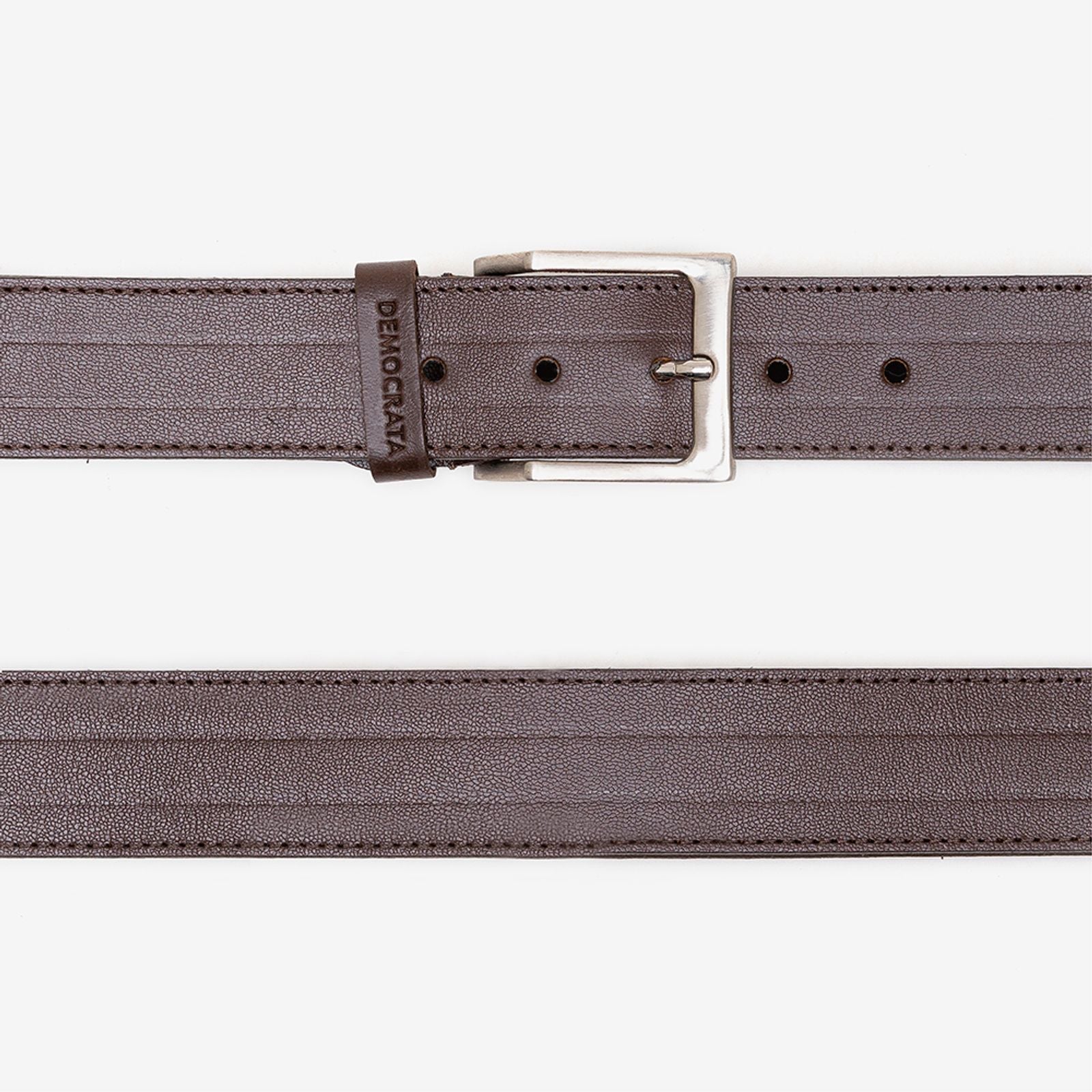 Cinto confeccionado em couro na cor café. Passador com o nome da marca, fivela de metal e contém duas linhas decorativas em relevo.