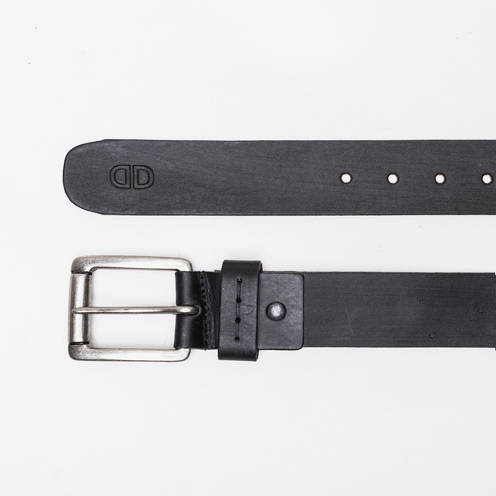Cinto confeccionado em couro na cor preto. Fivela de metal e contém cinco furos para melhor ajuste.
