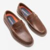 O Mocassim Oliver Metropolitan é confeccionado em couro na cor conhaque. Possui recorte em couro marrom no calcanhar, parte frontal costurada a mão, bico arredondado. Sua sola de E.V.A. somada a palmilha de P.U. proporcionam uma alta maciez, conforto e uma leveza completa.