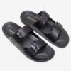 A Sandália Easy Weekend tem seu cabedal e forro produzidos em couro na cor preta, possui regulagem com fivelas de metal.